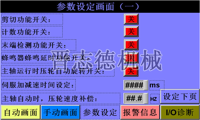 7、“主軸自動時,壓輪速度補(bǔ)償”,自動時,當(dāng)壓輪速度慢于主軸速度,則補(bǔ)償壓輪速度,該速度需要調(diào)試適當(dāng)。