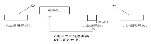 ①在左限開關至原點之間機臺停止時沒有碰到左右限開關時按下機械歸位將會回至初始位置注:必須是按過一次原點歸位之后機械歸位開關才起作(所回到原點位置是偏擺初始位置設置的長度即是原點位)。例圖: