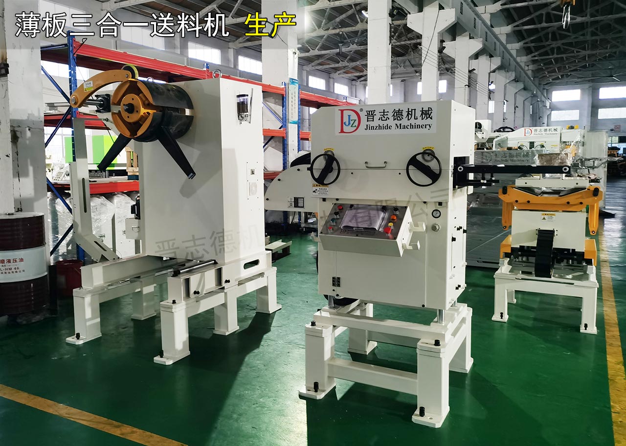 目前,國內(nèi)送料機(jī)生產(chǎn)廠家很多,但能生產(chǎn)大型沖壓自動(dòng)化設(shè)備的企業(yè)屈指可數(shù),而且高端送料機(jī)少之又少。為此,晉志德機(jī)械推出三合一送料機(jī),其集料架、整平、送料于一體,配有晉志德自開發(fā)的控制模快的裝置,相較于傳統(tǒng)材料架+整平機(jī)+送料機(jī)分體組成的沖壓生產(chǎn)線,使用三合一送料機(jī)能大的節(jié)省廠房空間、提高沖壓成品品質(zhì)、簡(jiǎn)化操作流程,是目前為沖床材料供給的佳自動(dòng)化模式。