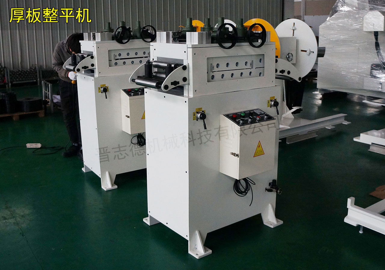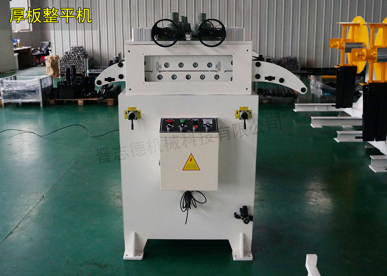 沖壓制造行業(yè)除需使用到0-3.0mm的薄板、中板材料外,同樣也會用到3.0mm以上的厚板材料,用于此類厚板材料整平的設(shè)備則稱為厚板整平機,厚板整平機又分為適用料厚0.5-4.5mm與適用料厚1.0-6.0mm的這兩種款式,它們的外觀為相似,但其使用的滾筒直徑、馬達的大小及齒輪齒合的角度是不同的。