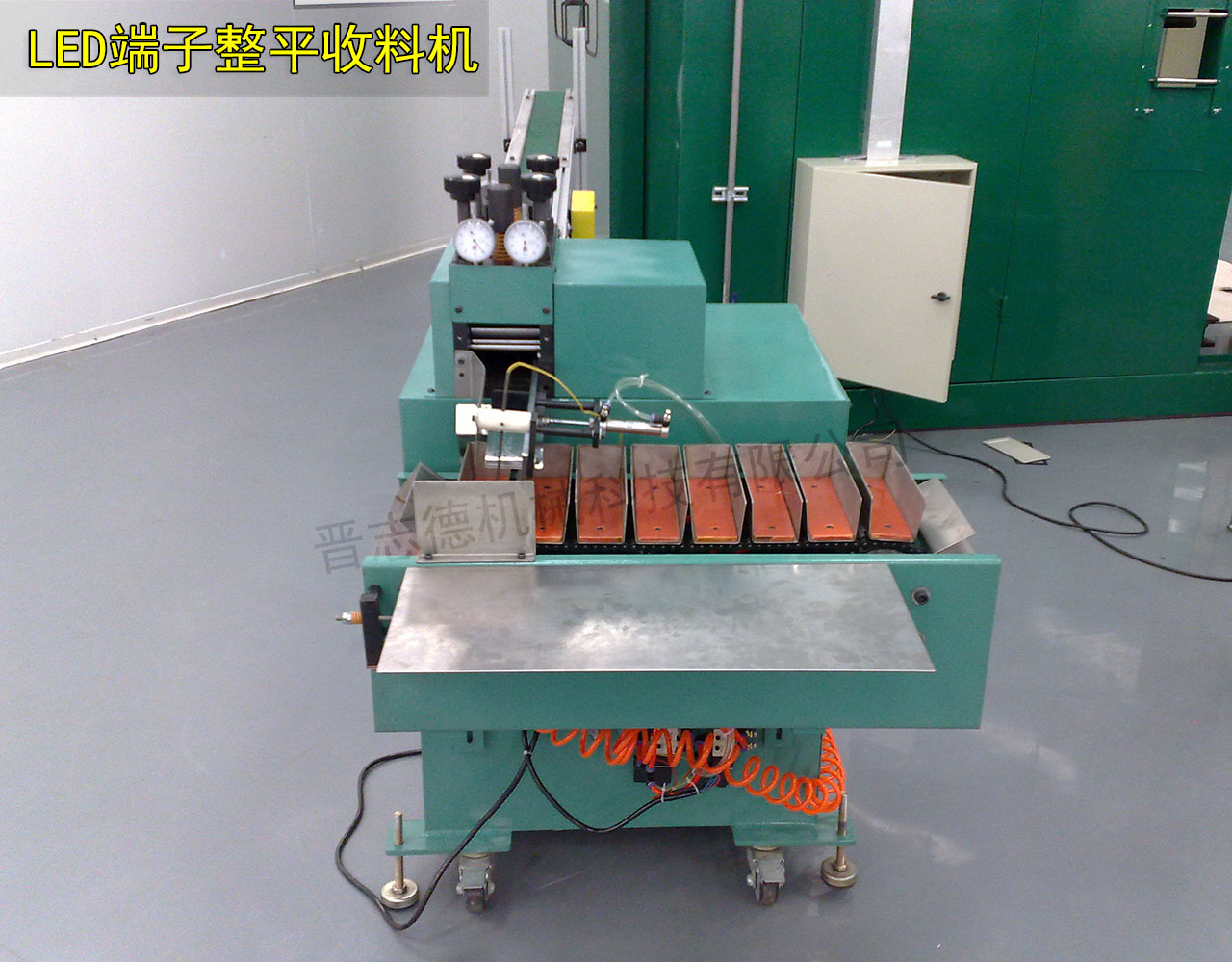 端子整平機雖也有整平機之名,卻不是單單的整平機而是一臺集輸送、整平、收料、包裝于一體的自動化設備,其準確的名稱應為LED端子整平收料機。