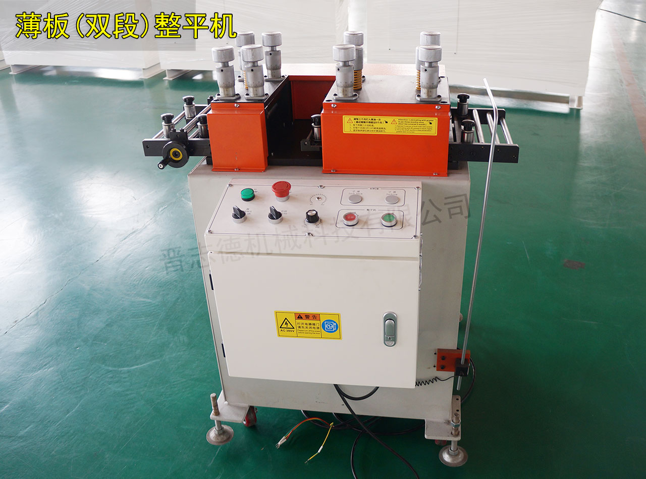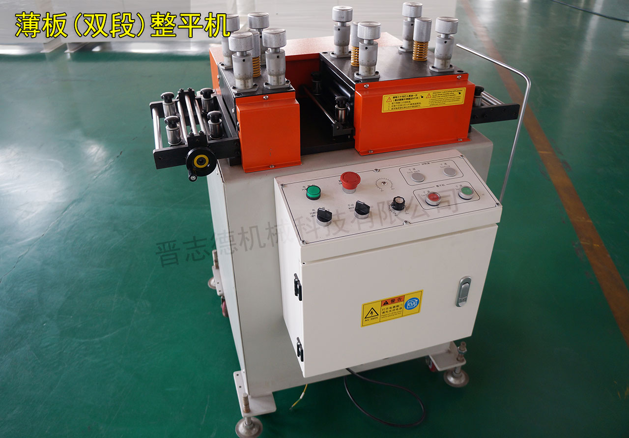 晉志德雙段式精密整平機的出現(xiàn)就從根本上解決了此種不足之處,其通過在一個整平機構中設置兩組整平組件,從而實現(xiàn)對材料的多次間歇性整平,而且每組整平組件中作為主動可調的上整平滾輪的數(shù)目逐步增加,大排距粗矯,小排距精矯,從而達到高精密整平之需求。