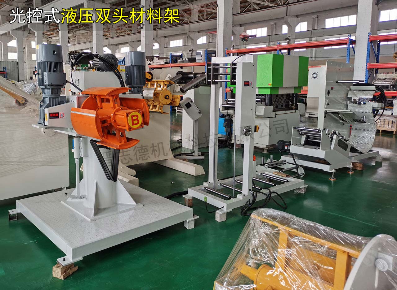 SMT系列雙頭材料架是為了從根本上解決卷料更換而造成的沖壓生產線生產中斷,影響生產效率低的問題而研發生產的料架設備。